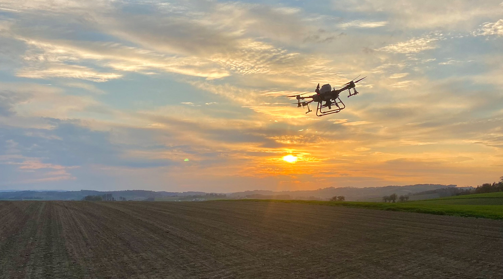 Die Vison landwirtschaftliche Maßnahmen aus der Luft durchzuführen ist an sich keine Neue. Nach einem langwierigen Genehmigungsprozess dürfen wir nun die erste Agrardrohne Österreichs für Sie betreiben.Mit 30kg Nutzlast können wir Granulate, Dünger, Saatgut sowie Flüssigkeiten aller Art ausbringen. Durch unser Einsatzfahrzeug können wir kontinuierlichen Betrieb bis ca. 120kg/ha Gesamtmenge ausbringen.