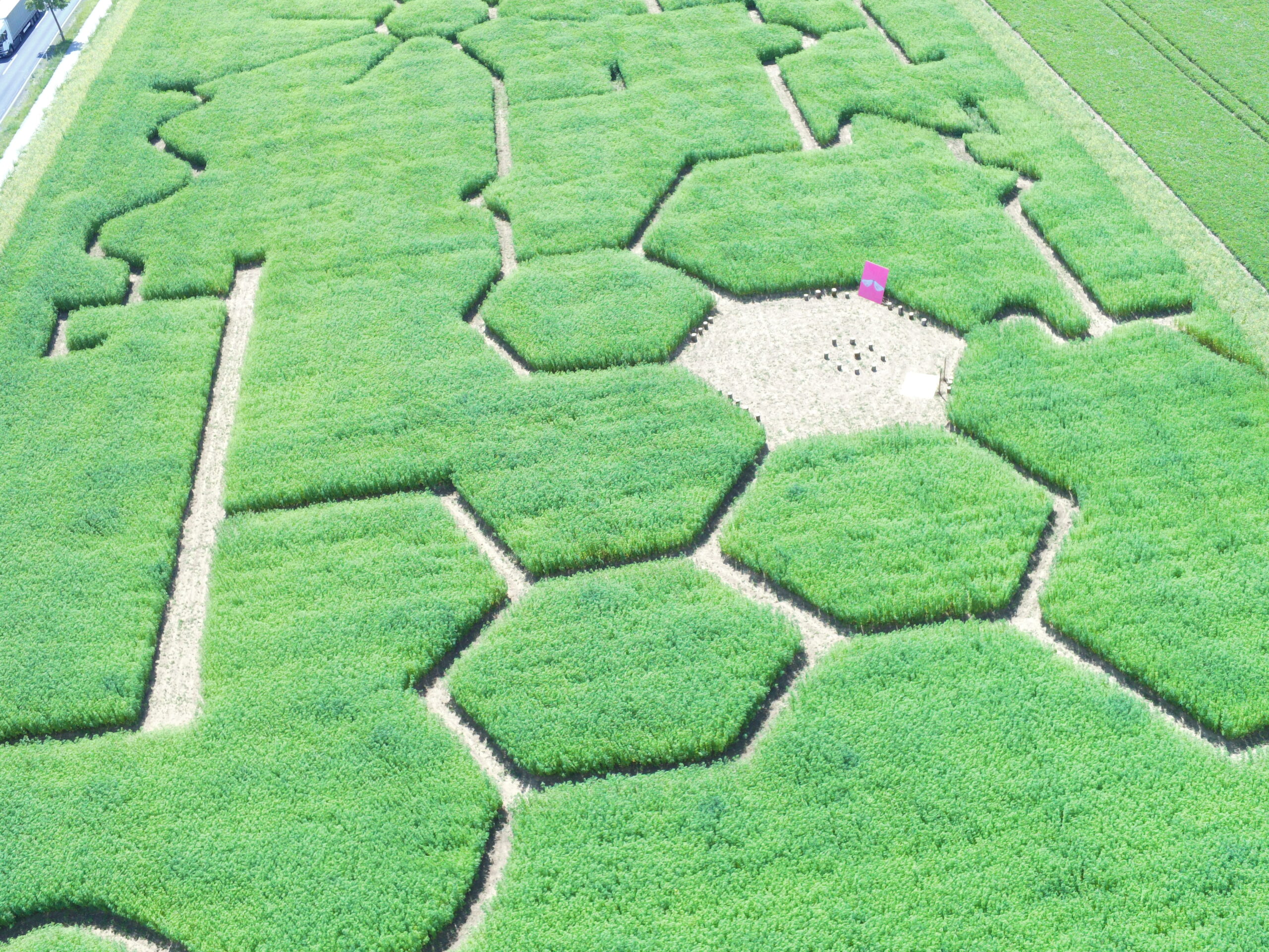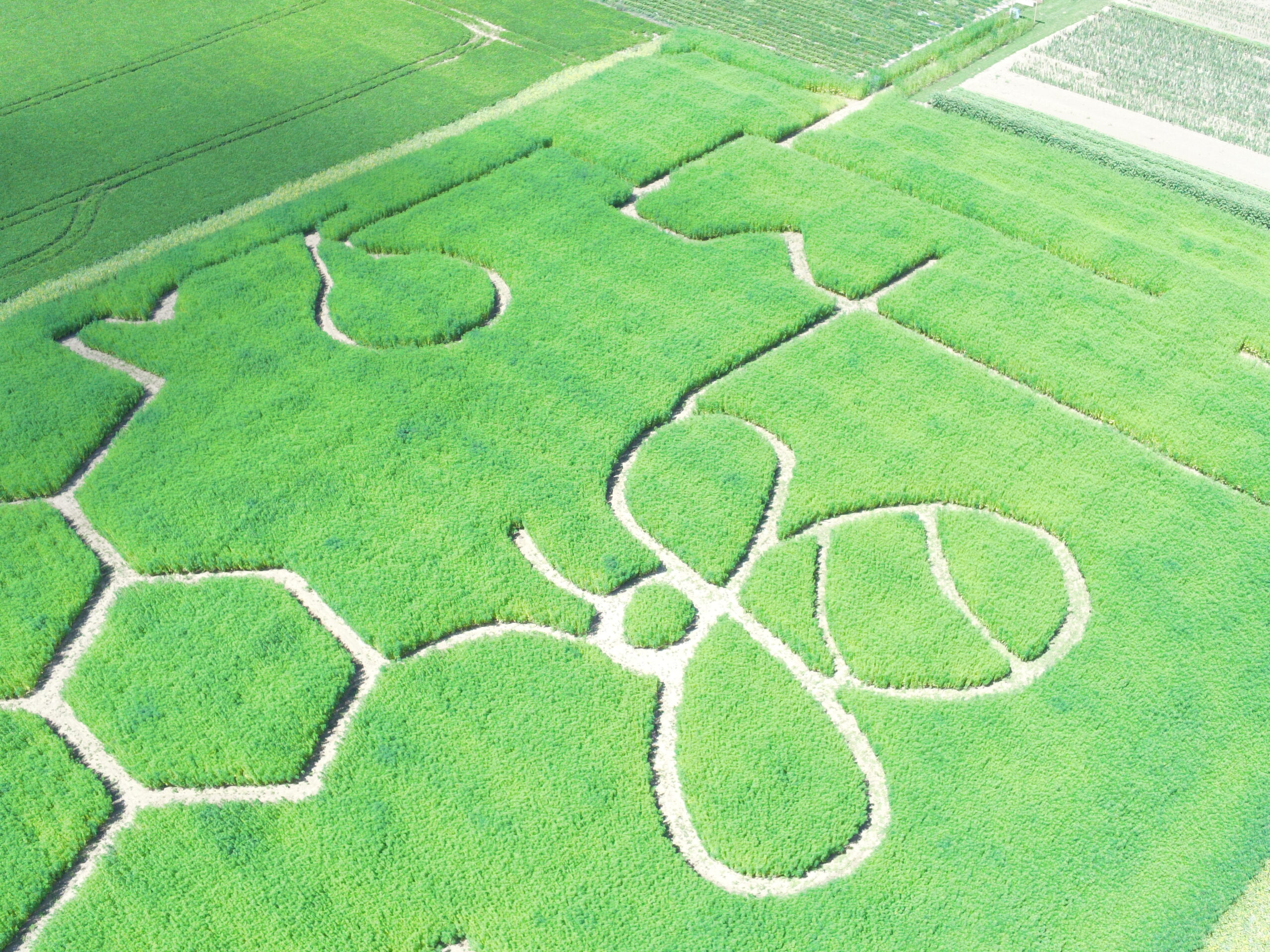 Wir säen Ihre Botschaften oder Muster durch gezielte Saatgut Platzierung mit Blütenpflanzen in ein Feld Ihrer Wahl und lassen dieses erblühen.
