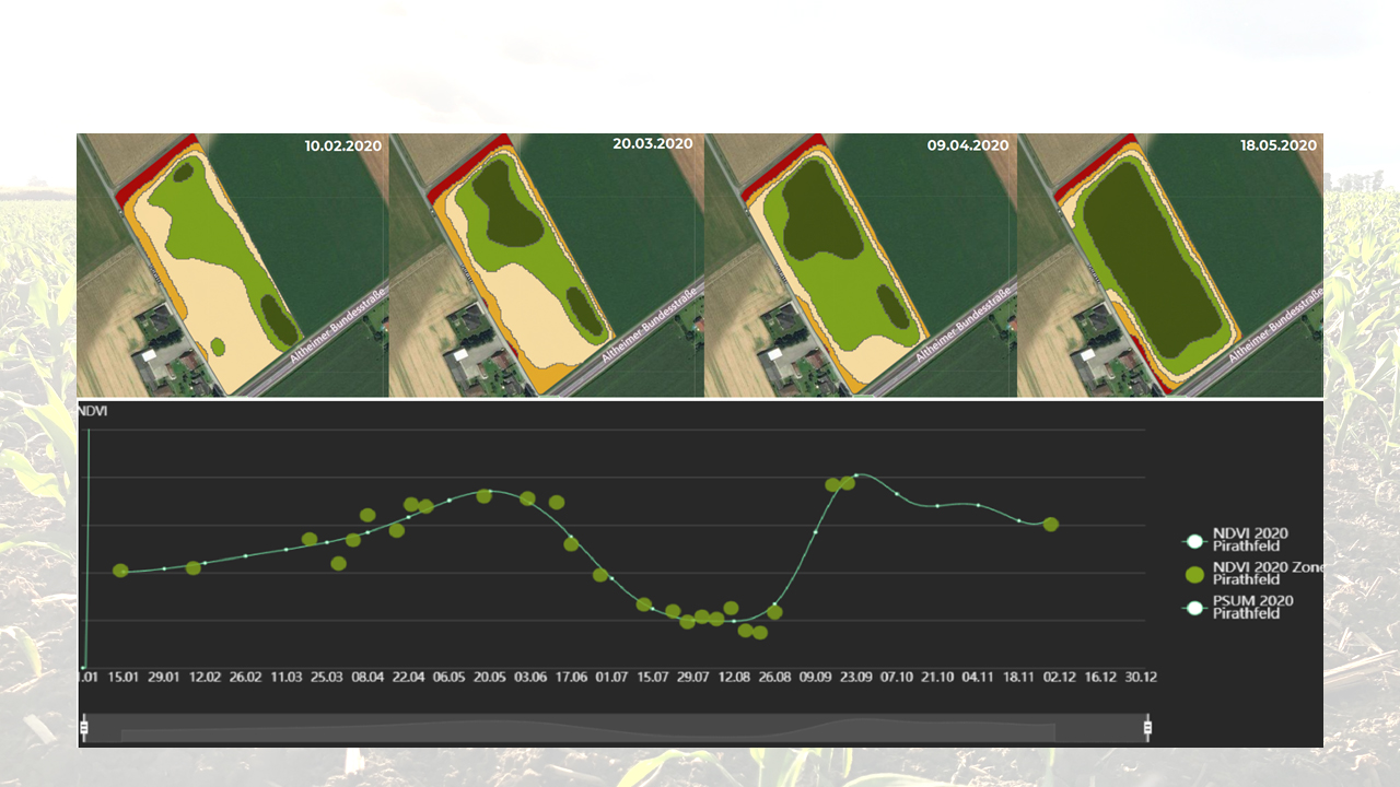 Gerade für Problemschläge bieten Vegetationsreports eine gute Grundlage zur Ursachenforschung. Sie zeigen klar und übersichtlich auf an welchen Schlagbereichen Probleme auftreten. Wir greifen dabei auf verschiedene Satellitendaten zurück und erstellen für Sie einen übersichtlichen Verlauf der Vegetationsentwicklung.
