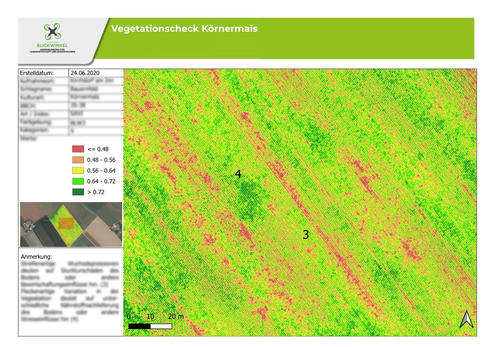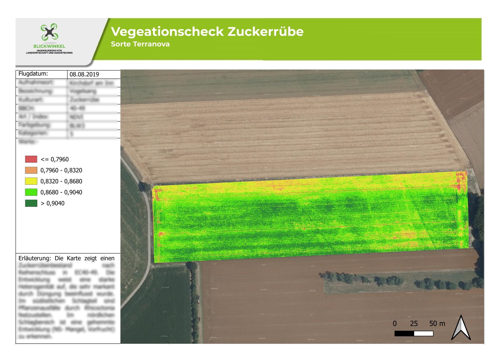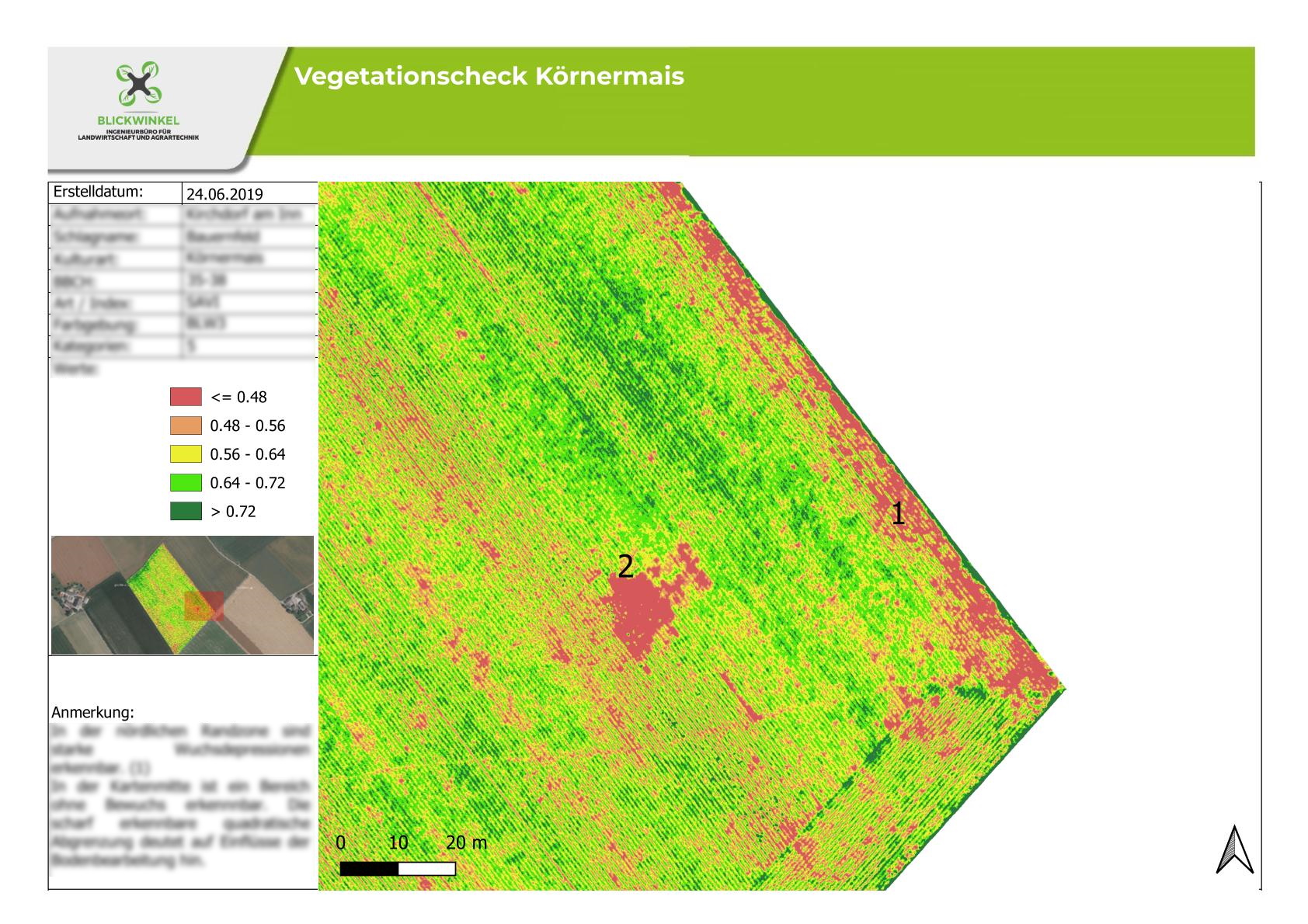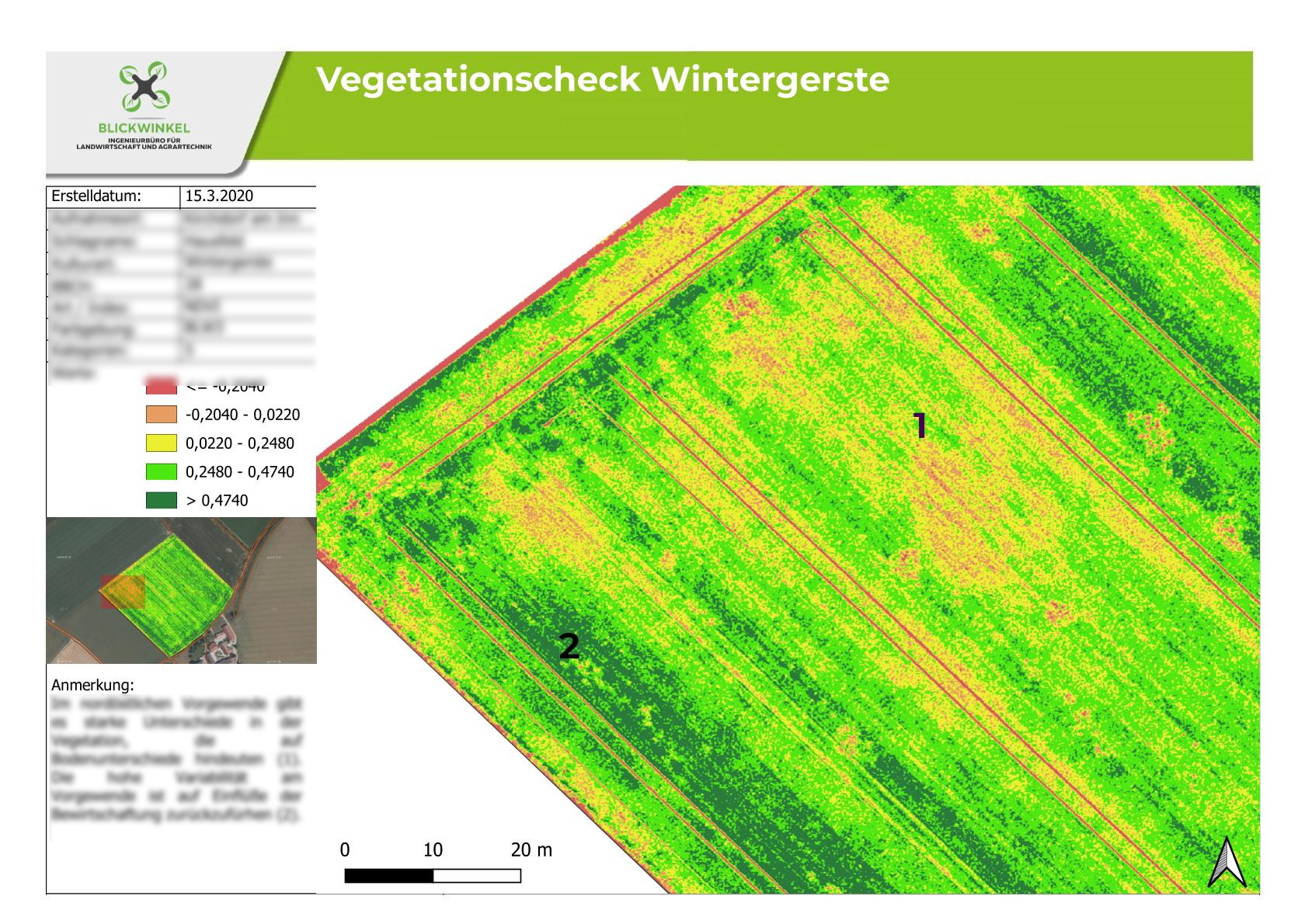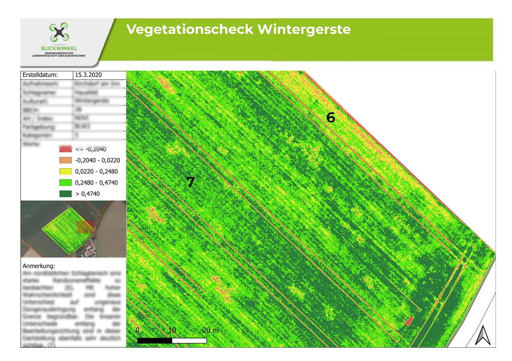 Je nach Flugzeitpunkt werden natürliche Wachstumseinflüsse oder Effekte, die Sie selbst durch ihre Bewirtschaftung herbeigeführt haben sichtbar. In den Checks wird Ihre Arbeit bzw. Ihre gesetzten Maßnahmen und die Auswirkungen auf das Wachstum sichtbar. Ebenso werden natürliche Effekte wie unterschiedliche Bodenarten oder Witterungseinflüsse, wie etwa Trockenstress oder Staunässe, sichtbar.