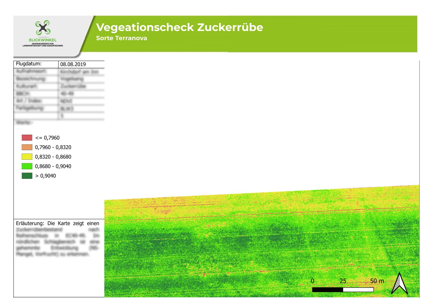 Sie erhalten die Ergebnisse als Bericht mit Vegetationskarten in druckbarer Form. Anhand der Karten können Sie die Ergebnisse selbst kontrollieren und interpretieren.